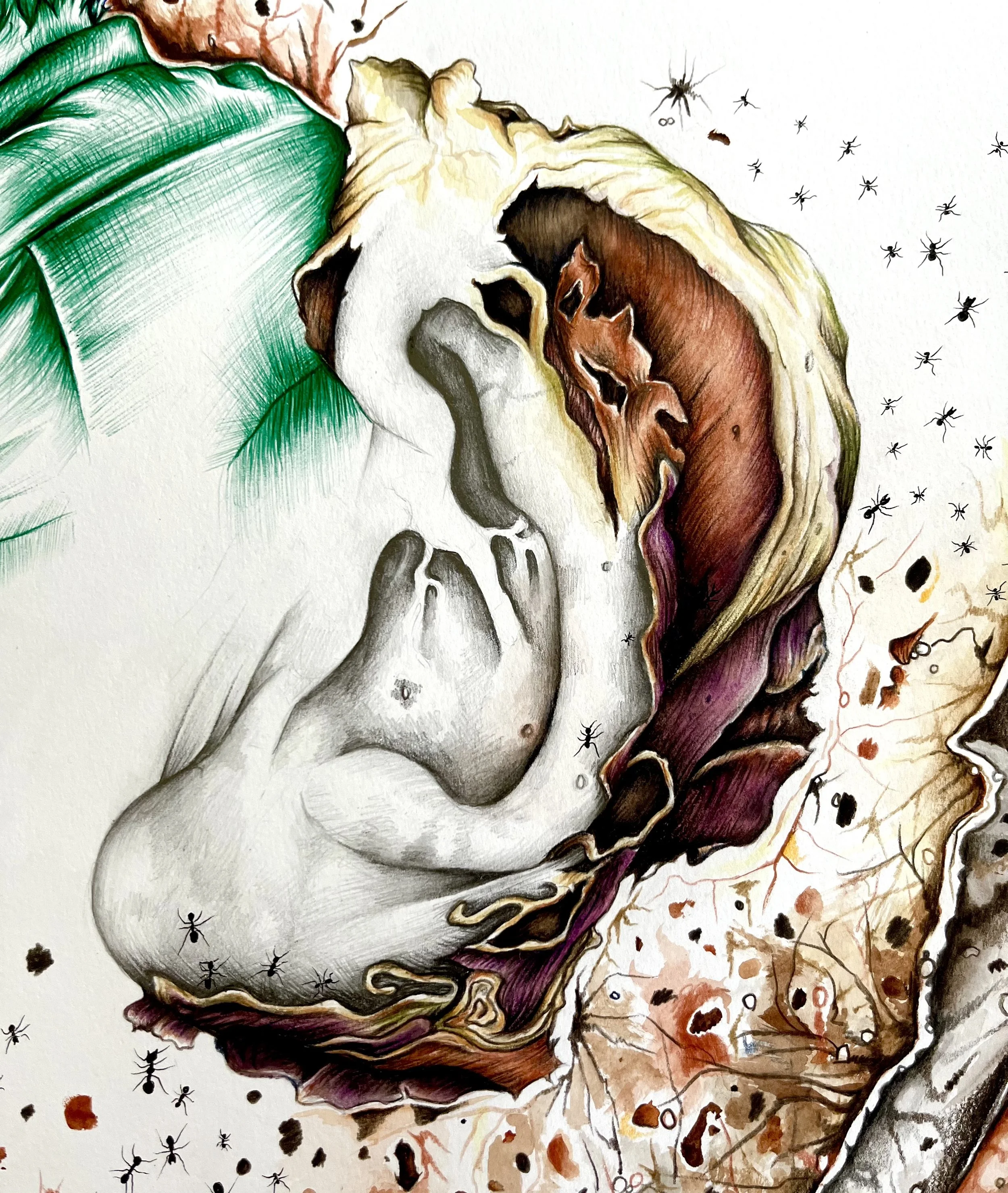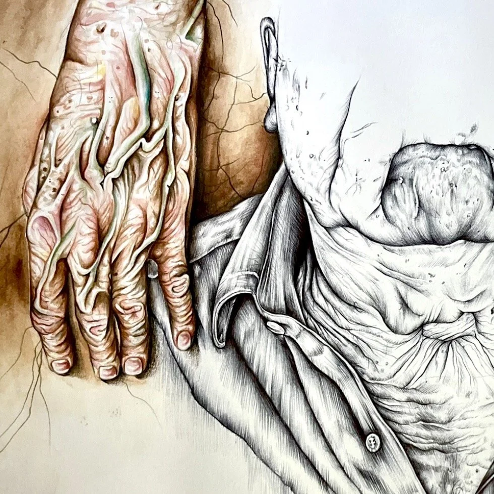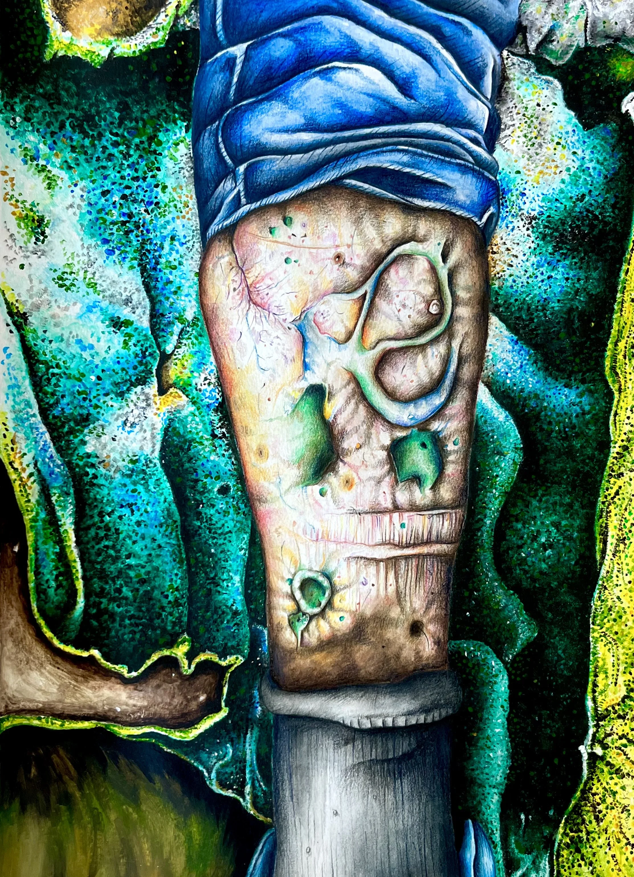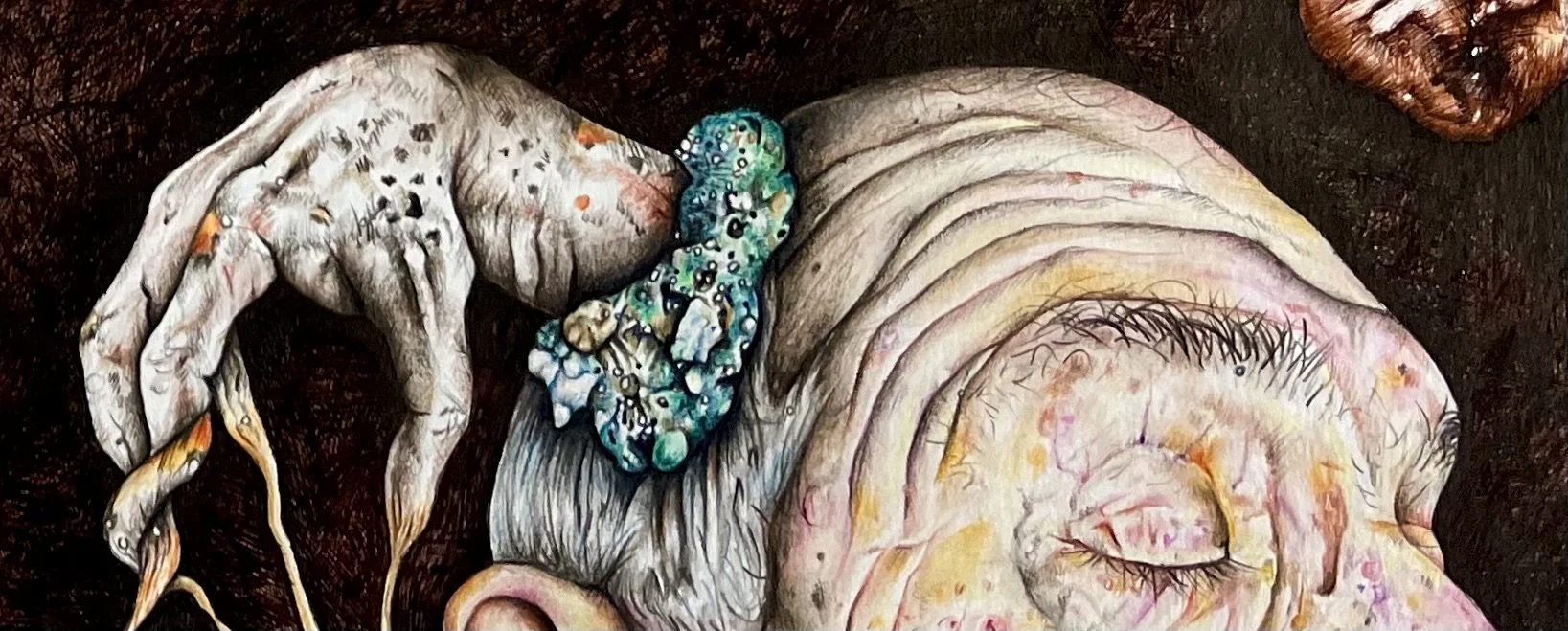 Title: Beauty Of DecayYear: 2023 Description: A mixed media project that aims to find beauty in ageing by exploring hybrids created when combining organic forms of nature with the human body.