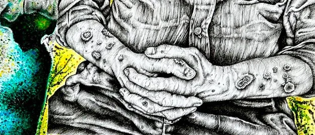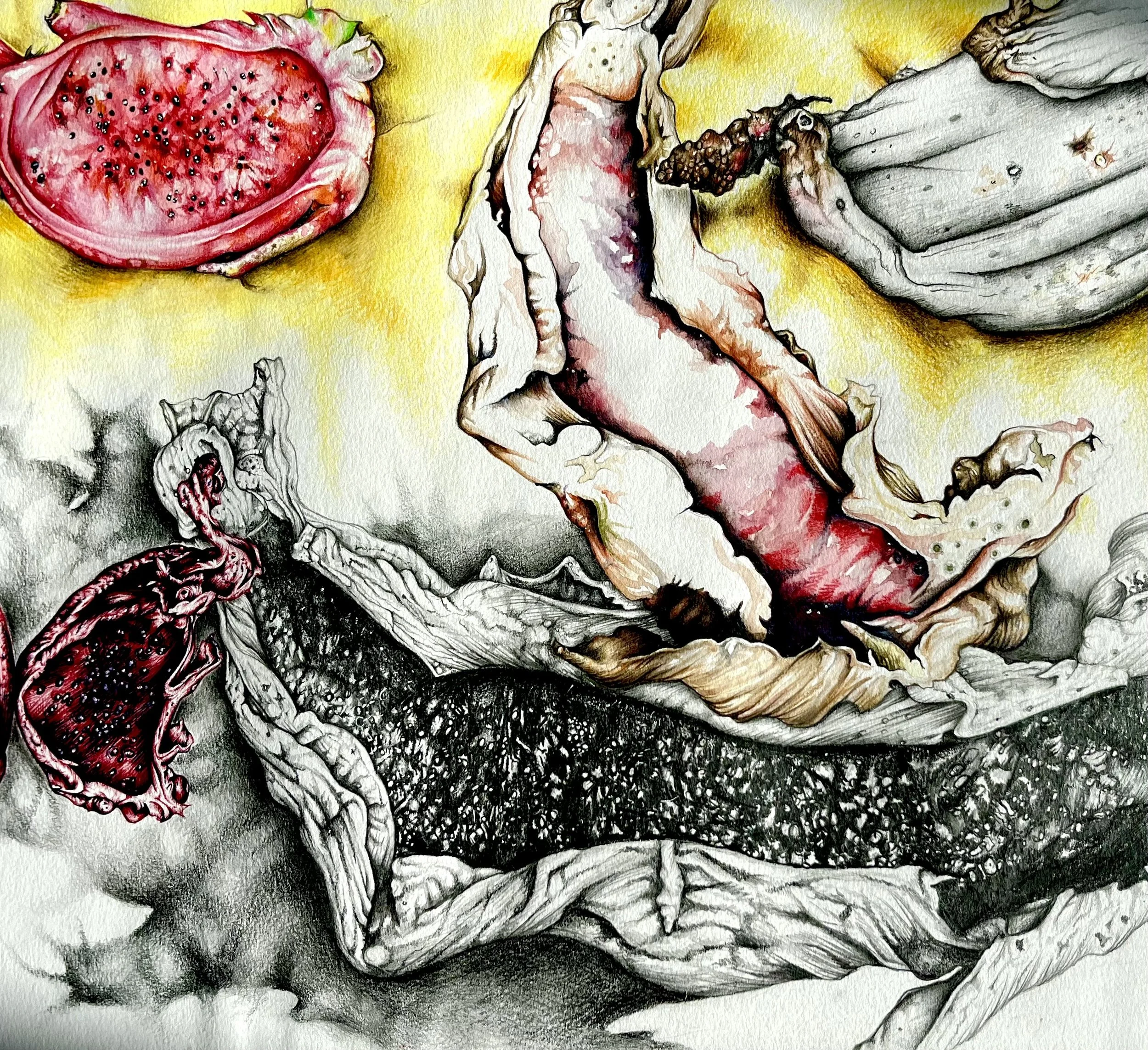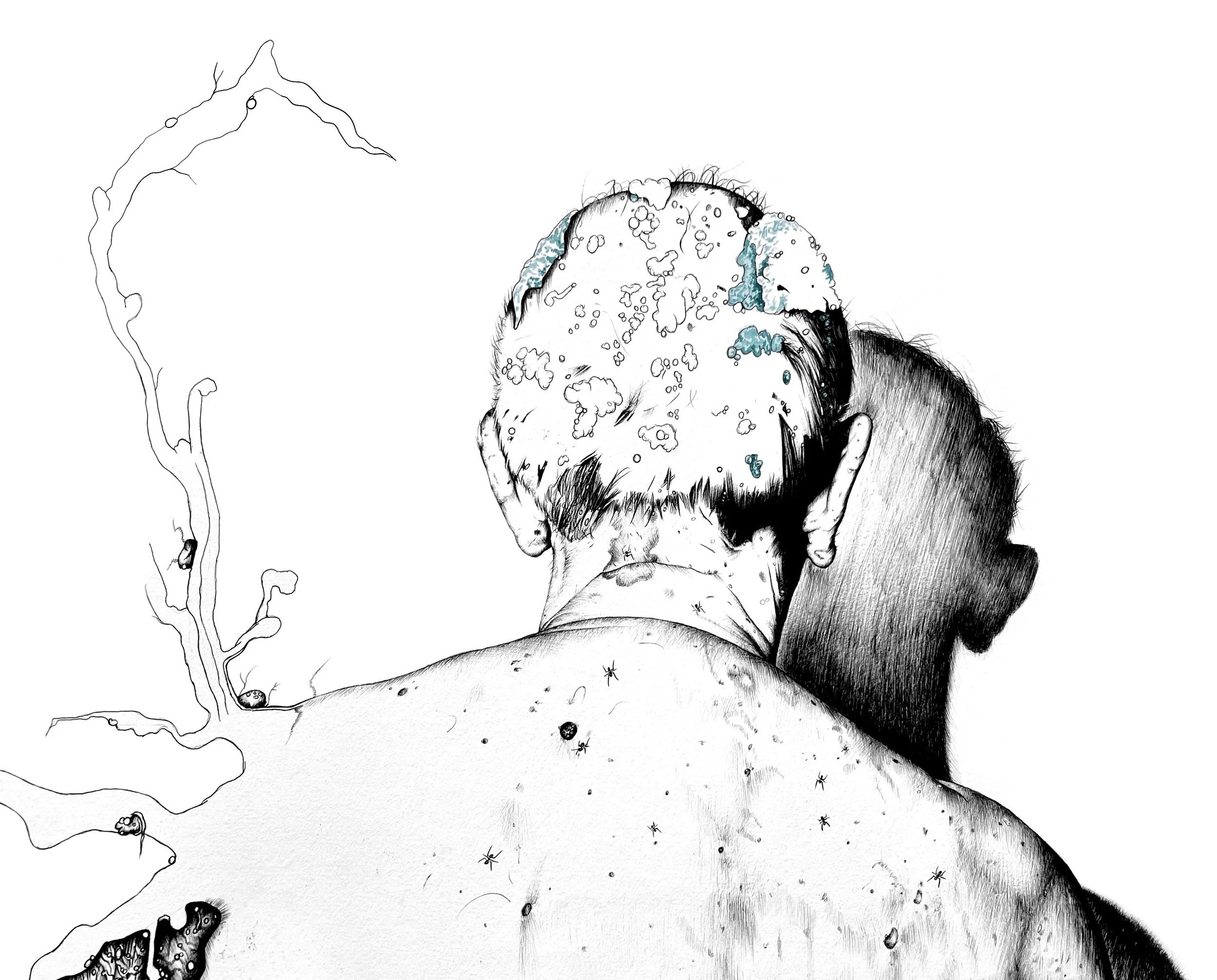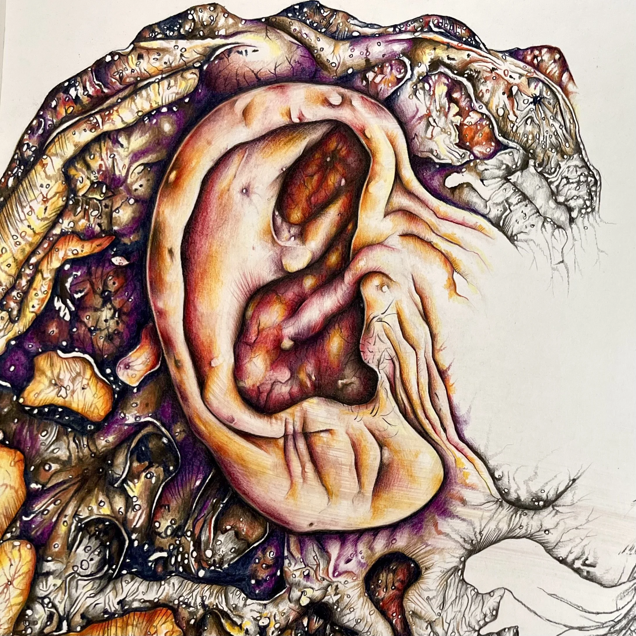 Title: Beauty Of DecayYear: 2023 Description: A mixed media project that aims to find beauty in ageing by exploring hybrids created when combining organic forms of nature with the human body.